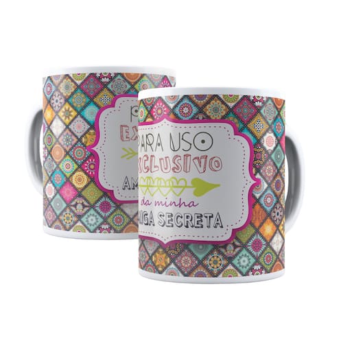 aneca personalizada de porcelana de alto brilho, com interior e alça Branca Coleção Amizades.