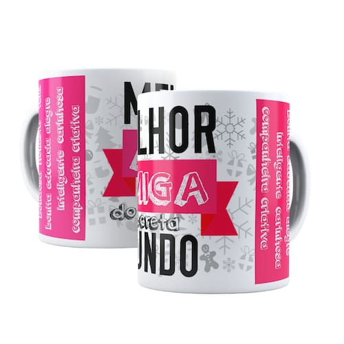 aneca personalizada de porcelana de alto brilho, com interior e alça Branca Coleção Amizades.