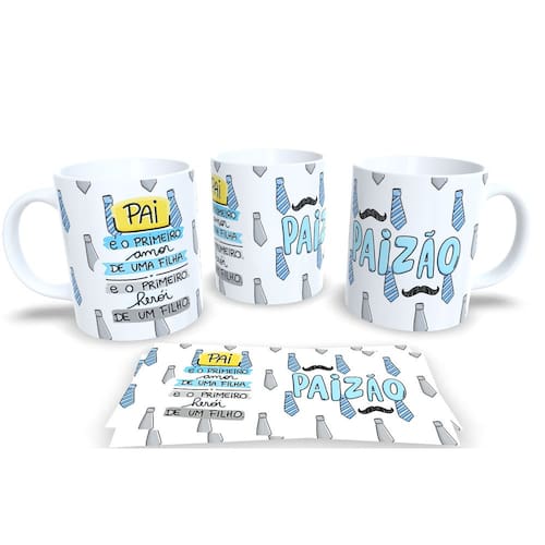Caneca personalizada de porcelana de alto brilho, com interior e Alça branca Coleção dia dos Pais.