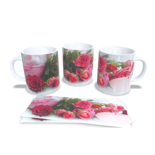 Caneca personalizada de porcelana de alto brilho, com interior e alça branca com linda Estampa da Coleção Flores.