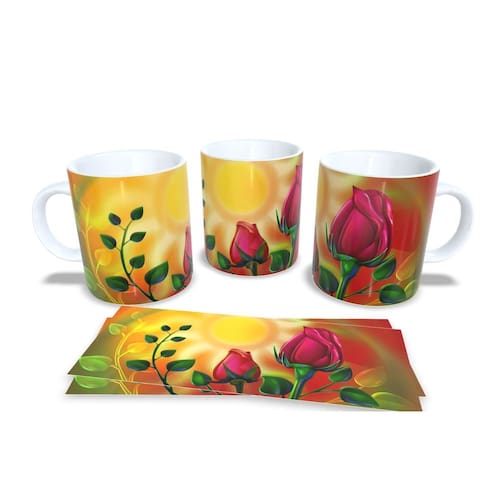 Caneca personalizada de porcelana de alto brilho, com interior e alça branca com linda Estampa da Coleção Flores.