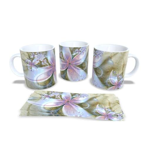 Caneca personalizada de porcelana de alto brilho, com interior e alça branca com linda Estampa da Coleção Flores.