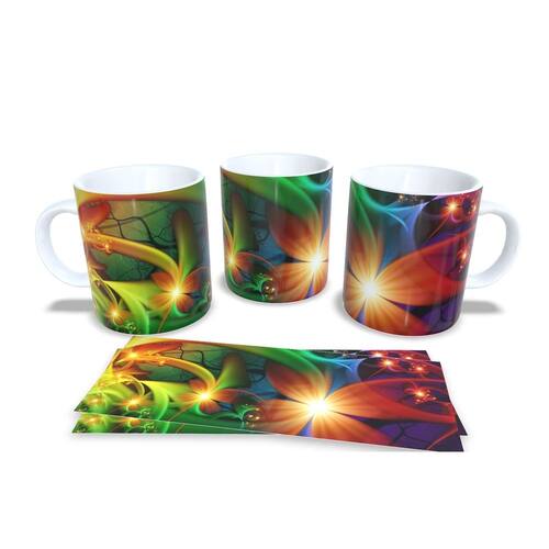 Caneca personalizada de porcelana de alto brilho, com interior e alça branca com linda Estampa da Coleção Flores.