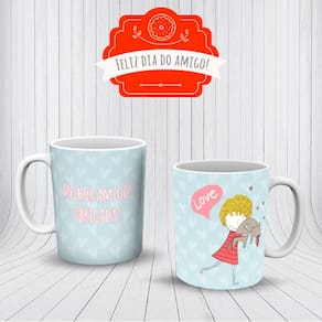 Caneca personalizada de porcelana de alto brilho, com interior e Alça branca Coleção Dia dos Amigos.