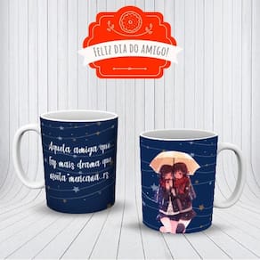 Caneca personalizada de porcelana de alto brilho, com interior e Alça branca Coleção Dia dos Amigos.