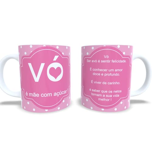 Caneca personalizada de porcelana de alto brilho, com interior e Alça branca Coleção Dia dos Avós.