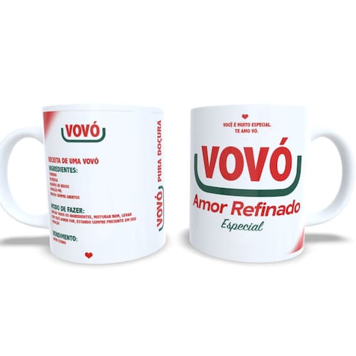 Caneca personalizada de porcelana de alto brilho, com interior e Alça branca Coleção Dia dos Avós.