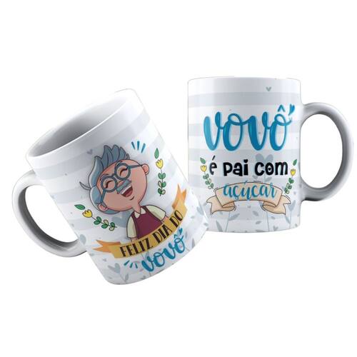 Caneca personalizada de porcelana de alto brilho, com interior e Alça branca Coleção Dia dos Avós.