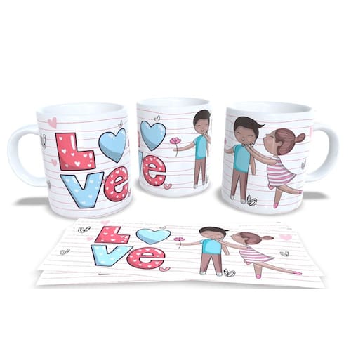 Caneca personalizada de porcelana de alto brilho, com interior e alça branca com linda Estampa da Coleção Dia dos Namorados.