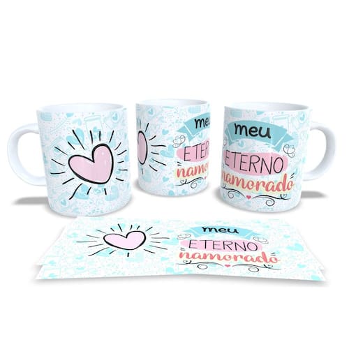 Caneca personalizada de porcelana de alto brilho, com interior e alça branca com linda Estampa da Coleção Dia dos Namorados.