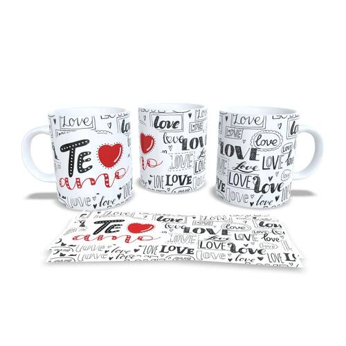 Caneca personalizada de porcelana de alto brilho, com interior e alça branca com linda Estampa da Coleção Dia dos Namorados.