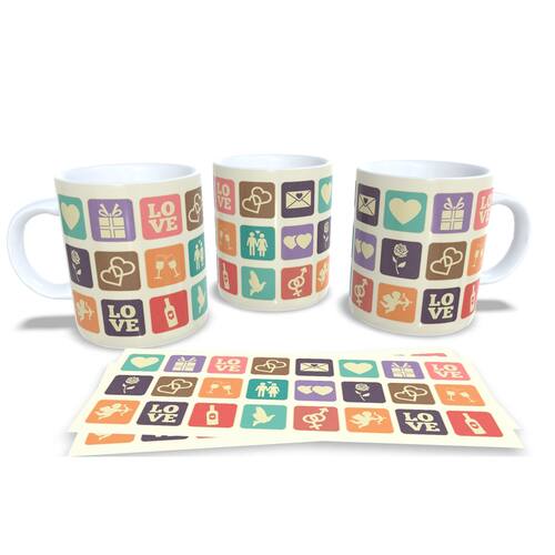 aneca personalizada de porcelana de alto brilho, com interior e alça branca com linda Estampa da Coleção Dia dos Namorados.