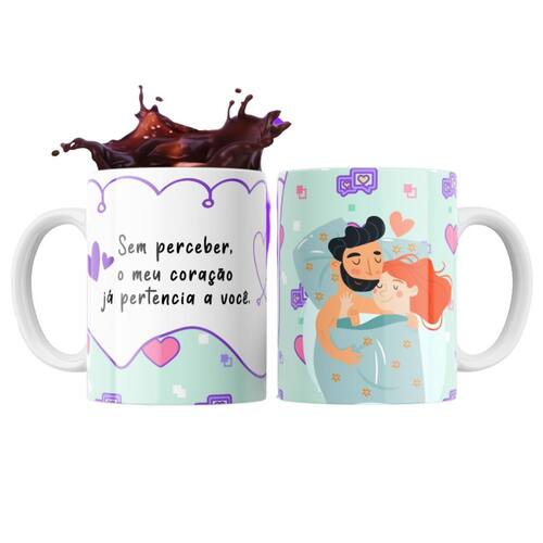 Caneca personalizada de porcelana de alto brilho, com interior e Alça branca Coleção Dia dos Namorados.