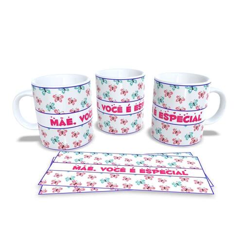 Caneca personalizada de porcelana de alto brilho, com interior e alça branca com linda Estampa da Coleção dia das Mães.