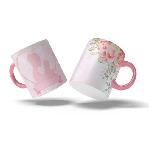 Caneca personalizada de porcelana de alto brilho, com interior e alça Rosa com linda Estampa do dia das Mães.