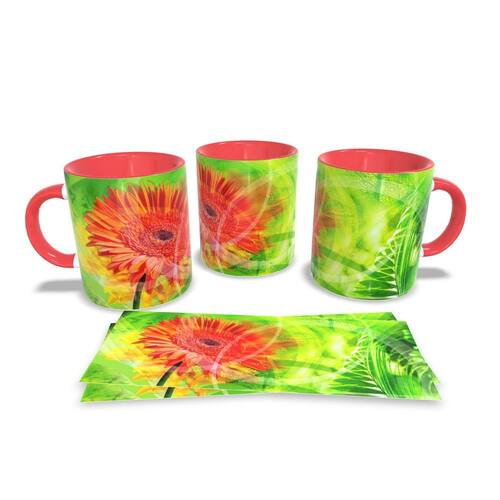 Caneca personalizada de porcelana de alto brilho, com interior e alça Vermelha com linda Estampa da Coleção Flores.