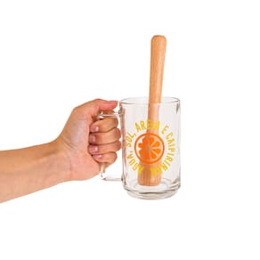 O socador é a estrela do show. Perfeito para esmagar frutas, ervas e o que mais você quiser direto no caneco. Transforme suas bebidas em algo único e autêntico.