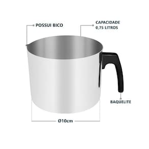 Esse Caneco é perfeito para ferver leite e preparar bebidas quentes com facilidade. Feito de alumínio polido, oferece uma combinação de eficiência e elegância, tornando o seu preparo de leite e outras bebidas quentes mais agradável e rápido.