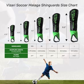 - Design criativo e durabilidade – O revestimento frontal Vizari Malaga Shin Guard protege suas canelas de chutes e é um escudo durável e de alta resistência que se encaixa automaticamente na sua perna. É um excelente protetor de treino para jogar sem hesitação ou restrição de movimento.