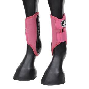 Proteção tipo caneleira para cavalo produzida em neoprene com reforço lateral em plástico reforçado, possui costuras nas bordas e 2 tira autocolantes reforçados para fechamento e regulagem permitindo ser utilizada em praticamente todos os portes de animais. Proteção indicada para as pernas dianteiras dos equinos.