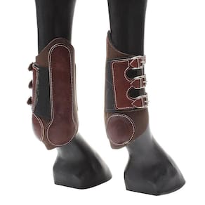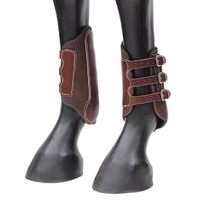 Caneleira para cavalo Rodeo West fabricada em couro com revestimento interno em Neoprene, possui reforço na lateral e na parte traseira em couro meio curtume, e fivelas me metal para regulagem.