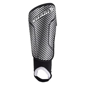 Vizari Caneleiras de futebol Matera com alças ajustáveis para adultos e crianças - Preto/Branco, Pequeno, Leve e Durável Caneleiras de Futebol com Proteção no Tornozelo