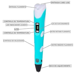 Caneta 3D Cores Impressão Bivolt Educativo Dê vida à sua imaginação com a Caneta Impressora 3D. Esta ferramenta permite criar objetos de decoração, brinquedos, desenhos e muito mais em diferentes cores. É leve e possui um design ergonômico para melhor manuseio. Funciona como uma impressora 3D manual, fundindo o plástico em uma temperatura elevada para criar objetos em 3 dimensões. Possui um painel LCD para indicar a temperatura e escolher o tipo de filamento que será utilizado, além de controle de velocidade. A caneta usa filamentos de plástico em ABS ou PLA no lugar da tinta, e é alimentada constantemente via cabo USB. É a ferramenta perfeita para crianças e adultos que buscam uma maneira divertida e criativa de expressar sua imaginação. Especificações Técnicas Caneta : - Modelo: Caneta Impressora 3D USB - Material: Plástico, Componentes Elétricos. - Cores: Azul, Amarelo, Vermelho e Lilás escolha a cor desejada - Alimentação de Energia: Via Cabo USB Bivolt - Diâmetro do Bico: 0.7mm - Temperatura de Aquecimento: 60 a 230 Graus Celsius - Dimensões Aprox.: 19cm Comprimento X 3cm Largura X 5cm Profundidade - Peso Aprox.: 55g Especificações Técnicas Filamento : - Modelo: Refil Filamento 3D - Material: PLA - Cores: - Diâmetro: 1.75mm - Peso Filamento: 30g - Comprimento Aprox.: 3 Metros Itens Inclusos na Embalagem: - 01 x Caneta Impressora 3D - 01 x Suporte de Descanso - 01 x Cabo de Alimentação USB - 03 x Filamentos cores - 01 x Manual Inglês Marca: Não Informado Ean: 7905609943181