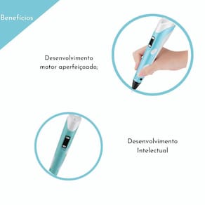 Caneta Impressora 3D A caneta é leve e possui um design super ergonômico que vai auxiliar no manuseio, também conta com um controlador de velocidade que a torna uma das canetas de mais fácil manuseio do mercado.Características:A caneta tem um bico de 0.7mm e usa o filamento de 1,75mm.Velocidade de saída de filamento ajustávelGrande durabilidadeDesign ergonômicoFácil troca de filamentoPainel LED de temperatura com luz auxiliar que mostra quando a caneta está pronta para o uso.ESPECIFICAÇÕES TÉCNICAS:Entrada AC 110 V-220 VSaída: DC 5 V 2ADiâmetro do Bico: 0.7 mmMateriais de saída tipo : Modelamento por depósito de fusãoMétodo de moldagem: Moldagem 3DÁrea de Impressão: ilimitadoPolvilhe velocidade: AjustávelTemperatura de aquecimento: 160 A 230 Graus Celsius Ajustável Material: Tampa da caixa de plásticoDimensões: 1874430 mmPeso: 325g Marca: Blend Shoop