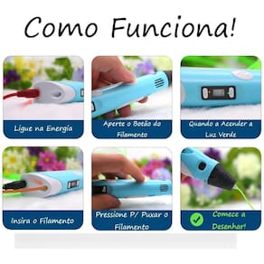 Caneta 3d usb com cabo e refil para impressão criativa Caneta 3d infantil - transforme a imaginação em arte A caneta 3d infantil é a ferramenta perfeita para pequenos artistas desbravarem o mundo da arte tridimensional de forma divertida, segura e criativa. Com design ergonômico e adaptada para mãos pequenas, ela é ideal para estimular a coordenação motora, a criatividade e o aprendizado das crianças. Faça parte do desenvolvimento do seu filho com essa incrível caneta 3d Características: fácil de usar: ajuste simples de temperatura e velocidade, perfeita para iniciantes. segura: bico com proteção térmica e desligamento automático para garantir total segurança. criativa: estimula a coordenação motora, a criatividade e o aprendizado de forma divertida. compatível: funciona com filamentos pla atóxicos e ecológicos, garantindo segurança e sustentabilidade. velocidade ajustável: controle a saída de filamento conforme a necessidade do seu projeto. design ergonômico: leve, confortável e perfeito para mãos pequenas. troca de filamento fácil: simples e rápida para a próxima criação painel led: mostra a temperatura com luz auxiliar, facilitando o uso. Benefícios: desenvolvimento motor aperfeiçoado: ajuda a melhorar a destreza e habilidades manuais. criatividade: estimula a imaginação das crianças em suas próprias criações. realismo: criações com um alto nível de detalhamento e formas tridimensionais. desenvolvimento intelectual: a caneta 3d contribui para o raciocínio lógico e habilidades cognitivas. Especificações técnicas: Entrada: ac 110v-220v Saída: dc 5v 2a Diâmetro do bico: 0.7mm Método de moldagem: modelagem 3d por depósito de fusão Temperatura de aquecimento: ajustável de 160c a 230c Área de impressão: ilimitada Peso: 325g Tampa da caixa: plástico de alta durabilidade Dimensões: 187 x 44 x 30 mm Cuidados: não desmonte o produto. evite deixar cair no chão. evite o contato com água. Itens inclusos: 1 caneta de impressão 3d 3 filamentos teste 1,75mm cores - aprox. 3 metros cada. 1 suporte de apoio da caneta 1 manual do usuário 1 cabo usb Acompanhe seus filhos em um universo colorido e criativo, desenvolvendo habilidades e criando momentos inesquecíveis com a caneta 3d infantil Marca: Não Informado