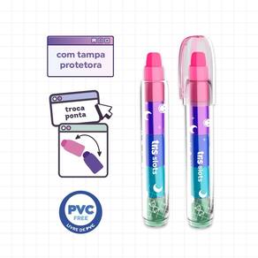 A caneta borracha Slots é super nostálgica e vem com 5 cores de borracha para trocar a ponta.