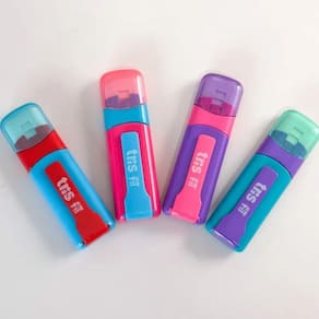 Caneta borracha fit com trava- - tris A caneta borracha fit da tris tem textura macia e é livre de pvc. Seu corpo em plástico brilhante e resistente tem 4 opções de cores vibrantes. Além disso, possui trava e tampa protetora que permitem que a borracha fique firme e limpa. Composição: borracha natural, borracha sintética, corantes, aglutinantes e resinas termoplásticas. Dimensões: 9cm x 2,6cm x 1,5cm Após a compra enviar mesndagem com a cor/modelo desejado, caso tenhamos em lhe enviaremos Marca: Não Informado