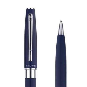 Caneta crown esferográfica metal barcelona azul tinta azul