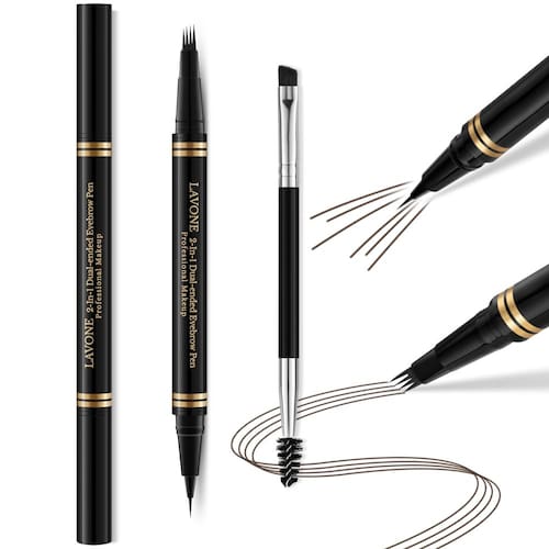 - ?Caneta de sobrancelha 2 em 1?: um inovador lápis de sobrancelha 2 em 1 de ponta dupla com caneta de sobrancelha microblading de 4 pontas que preenche e mistura LAVONE cor nas sobrancelhas, desenha cabelo real natural 3D e a caneta ultraprecisa faz traços realistas semelhantes a cabelos e preenche áreas esparsas. Desliza facilmente e suavemente para construir sobrancelhas de aparência natural, impecáveis, simétricas e mais cheias com desgaste de até 24 horas para sobrancelhas. É de longa duração, à prova de manchas e à prova d'água.