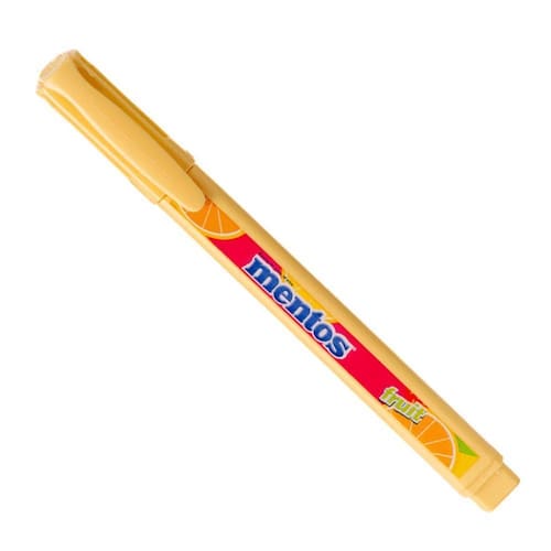 Marca-texto mentos veio para iluminar seus dias com cores intensas e um aroma delicioso. Com uma ponta chanfrada que desliza suavemente sobre o papel, ele destaca informações importantes com estilo. O design anatômico em formato d é inovador e ergonômico. - cor: amarelo pastel - ponta chanfrada - imagens meramente ilustrativas