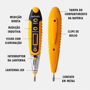 Para teste de cabo do fonte , cabeamento elétrica , ou outros tipo de cabo AC se tem energia , basta pressione o botão INDUCTION , e em seguida encoste a ponta da caneta no cabo quer ser verificado , no visor da caneta , em canto apresentará um desenho de raio , isso significa que há corrente no cabo , caso contrario , não haverá corrente.