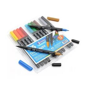 Estojo de canetas Brush Pen Cis Dual com 12 Cores e ponta pincel indicada para artistas plásticos, gráficos, arquitetos, desenhistas, designers e ilustradores. Ideal para amantes de lettering