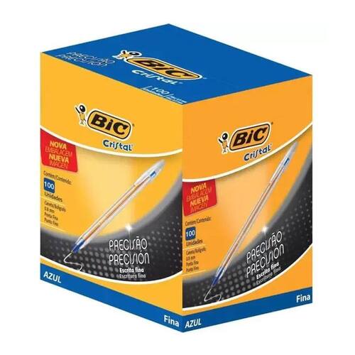 Caneta esferográfica cristal fina azul caixa com 100 unidades - Bic