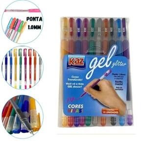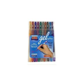 Caneta Esfereográfica 1.0 Gel Glitter 10 cores KZ98121 Descrição e ficha técnica