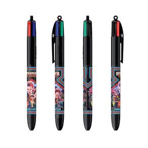 A Caneta BIC 4 Cores é um ícone de mercado! Nesse modelo clássico que conta com tintas clássicas, com apenas um clique no botão, você seleciona a cor que deseja. Cada Caneta ainda possui corpo decorado com os marcos das 4 primeiras temporadas de Stranger Things, dando um ar enigmático e cheio de personalidade para essa caneta tão icônica da BIC. As Canetas contam com ponta média de 1.0mm com largura da linha de 0.32mm. Além disso, não travam durante o uso!