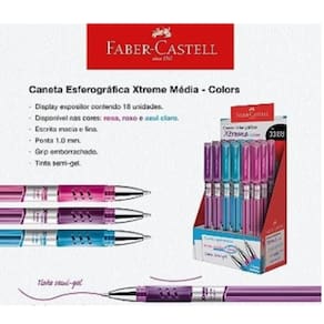 - Caneta esferográfica: Xtreme Colors; - Tinta semi-gel nas cores: rosa, roxo e azul claro; - Ponta média: 1.0mm; - Grip emborrachado; - Escrita super macia;