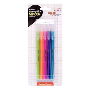 Minimalista no design, atraente no visual e muito prática no uso, assim pode ser descrita a caneta esferográfica sunset jocar office. Impactante visualmente, ela tem seu corpo colorido e despojado. Já quando está na mão, oferece suavidade, sendo divertida para escrever, desenhar, tracejar ou mesmo rabiscar. Possui ponta de 1.0 mm de diâmetro, variedade de cores na tinta, tampa com clip para prender em cadernos e agendas, design moderno que alegra as tarefas no estudo ou no escritório e formato redondo que proporciona conforto na pegada. Atenção: imagem meramente ilustrativa. Pode ocorrer mudanças no tom da cor para o produto real ou mudanças na embalagem sem aviso prévio por parte do fornecedor/fabricante. Marca: Não Informado