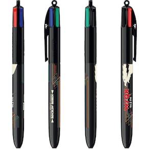 A Caneta BIC 4 Cores e um icone de mercado! Nesse modelo classico que conta com tintas classicas, com apenas um clique no botao, voce seleciona a cor que deseja. Cada Caneta ainda possui corpo ilustrado com Demogorgon, dando um ar enigmatico e cheio de personalidade para essa caneta tao iconica da BIC. As Canetas contam com ponta media de 1.0mm com largura da linha de 0.32mm. Alem disso, nao travam durante o uso! Conjunto de Canetas com 1 Unidade.