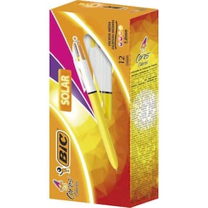 BIC, Caneta Escrita Media Retratil, 4 Cores Fashion Solar, Corpo Amarelo, 12 Unidades