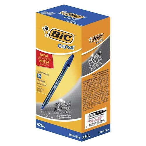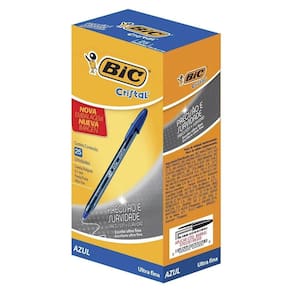 Marca: BIC Modelo: Cristal Ultra Fine 0.7mm Unidades por embalagem: 25 Tipo de caneta: Caneta esferográfica Tipo de ponta: Extra fina É adequada para gravação: Não Inclui estojo: Não Quantidade: 25 Tipo de unidade: Caixa