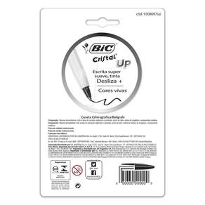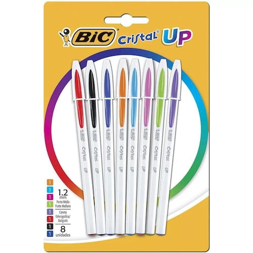 Caneta Esferográfica Bic Cristal Up Ponta Média 8 Cores Caneta Esferográfica Bic Cristal Up Ponta Média 8 Cores De olho no público jovem a BIC lançou a linha de canetas esferográfica BIC Cristal UP, procurandoTransmitir singularidade a autenticidade A tecnologia na produção permitiu que a cor do clipe ficasse diferente da cor do corpo da caneta É uma caneta de muita qualidade e desliza muito bem na folha sem precisar de muitos esforços Disponível em cores vibrantesO corpo trás muito conforto na hora da escrita em companhia com a sua ponta média 1,2mm DiferenciadoresVersão moderna do BIC Cristal Dura+Corpo BrancoClipe e ponteira na cor da tintaTampa ventiladaPonta média 1,2mm EspecificaçõesCor: Vermelha, Preta, Azul, Laranja, Azul Claro, Rosa, Verde e RoxaIndicações: Para escreverVolume: Blister 8 unidades EmbalagemCaneta Esferográfica Bic Cristal Up Ponta Média 8 Cores Garantia12 Meses