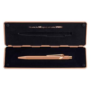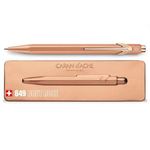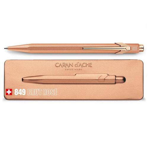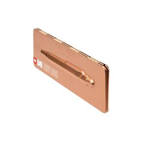 Corpo hexagonal de alumínio Design em ouro rosa e aparência acetinada obtida através de explosão de microgrânulos e tratamento eletroquímico. Grampo metalizado e botão de pressão 1 a 2 mícrons de ouro . Contém uma caneta esferográfica equipada com o cartucho de tinta azul médio Goliath. Fabricada na Suiça.