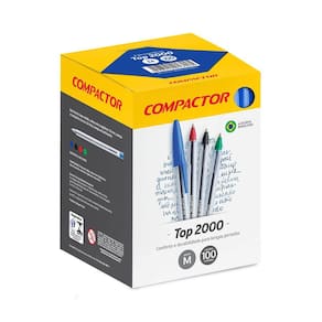 A Caneta Esferográfica Compactor Top 2000 Possui Escrita Média, Macia e Durável. Produto Reconhecido Por Sua Tecnologia e Durabilidade Para Longas Jornadas. Seu Corpo Arredondado com Pega Sextavada Garante a Ergonomia Ideal Para o Conforto Na Escrita. o Segredo do Sucesso da Top É a Resistência de Seus Componentes e o Rendimento da Sua Carga, Pois Escreve Até a Última Gota de Tinta. o Corpo Transparente Permite Total Controle do Consumo da Tinta. Top É Uma Caneta Para o Ano Todo. Caixa com 100 Unidades.
