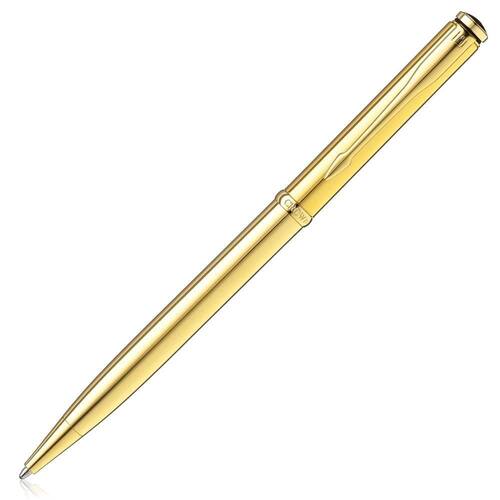 Caneta Esferográfica Crown Ref: Di10068o Sigma Dourado Caneta Esferográfica Comprimento: 14,0 cm Diâmetro: 0,7 cm Peso Aproximado: 20g Ponta Média Acompanha uma Carga Acoplada na Caneta Abertura: Torção Materia do corpo: Metal de 1 Ano Marca: Não Informado