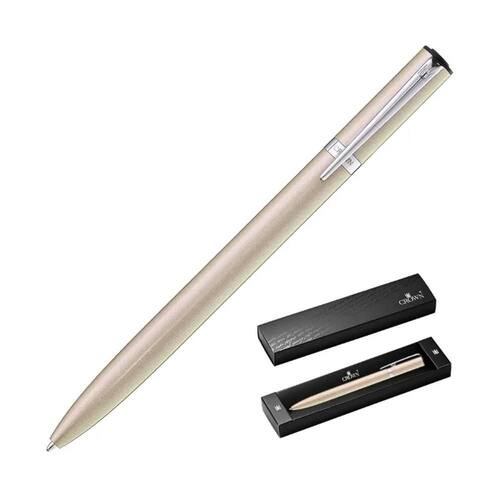 Caneta Esferográfica Crown Ref: Di18002o Aventura Dourada Caneta Esferográfica Comprimento: 14,2 cm Diâmetro: 1,1 cm Peso Aproximado: 19g Ponta Média Acompanha uma Carga Acoplada na Caneta Abertura: Torção Materia do corpo: Metal de 1 Ano Marca: Não Informado