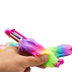 Caneta esferográfica retrátil multicolorida Maydahui 6 em 1, 6 cores, canetas de pelúcia Shuttle Rainbow de 0,5 mm, canetas pompom para estudantes, professores, material escolar, papelaria, carnaval, lembrancinhas